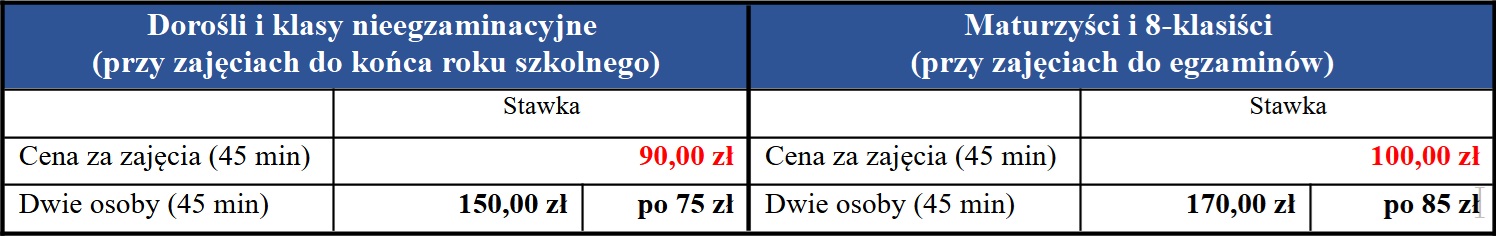 - Za zajęcia można płacić z góry za miesiąc lub po każdej lekcji.